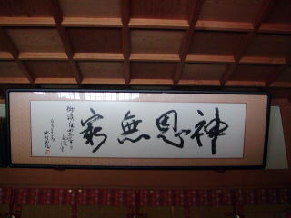 北村西望 師による奉納額で、題字は 『 神恩無窮 』 です。