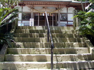 かこい組様 ご奉納による参道階段の手摺りです。二の鳥居下の階段まで続いています。