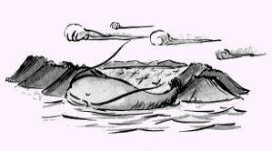 鯰の別の話では阿蘇谷の水は流れ出たが、中ほどに大きな木のようなものが往生岳(おうじょうだけ)の麓から尾籠(おごもり)(阿蘇郡一の宮町尾籠)まで横たわっています。よく見ると大鯰が往生岳にヒゲを巻き付け、尾籠に尾を引っかけています。