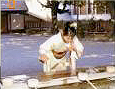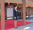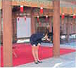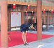 お参り前に姿勢をただします。 (玉串がある場合は、先に玉串を供えてからお参りします) |