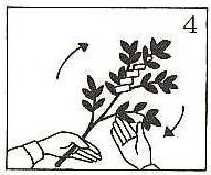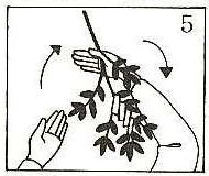 胸の高さで両手を合わせ、右指先を少し下にずらします。 肩幅程度に両手を開き、2回打ちます。 |